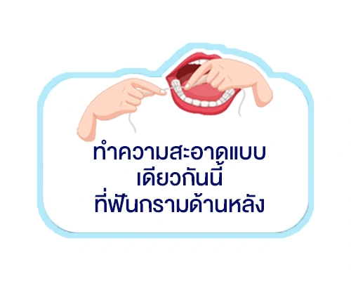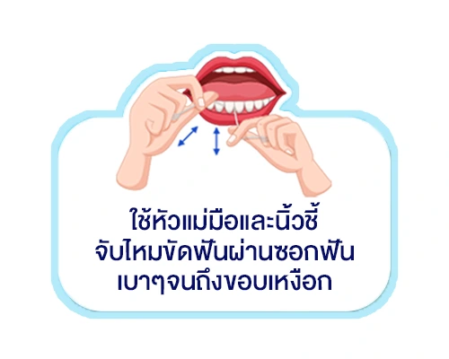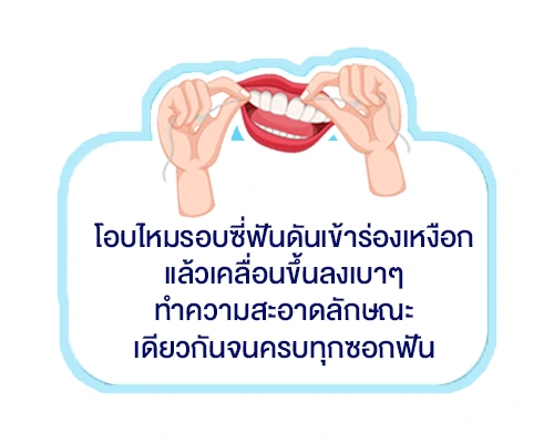 - ค่อยๆ ใช้ไหมขัดฟันจนครบทุกซี่ฟัน